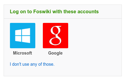 Configuration of Open ID Connect Authentication for your Foswiki site requires a bit of work, knowledge about Foswiki's configuration files and at least a passing understanding of it's templating system.